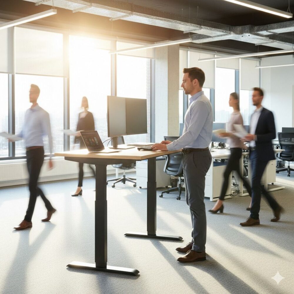 Descubre la perfecta combinación de estilo y funcionalidad con nuestro escritorio Pro SmartDesk. Diseñado para adaptarse a tus necesidades, nuestro escritorio te permite trabajar de pie o sentado con solo pulsar un botón, promoviendo una postura saludable y aumentando tu productividad.